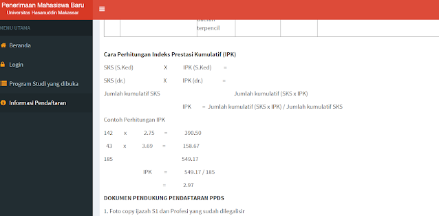UNHAS memberlakukan batas bawah IPK sebesar 2.75 tanpa batas akreditasi FK. Bahkan di website pedaftarannya, UNHAS juga menuliskan cara perhitungan IPK untuk mendaftar PPDS di UNHAS.