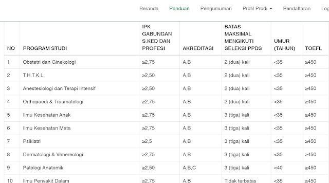Sumber informasi mengacu pada website yang tercatat pada laman Daftar Center PPDS dan Program Studi