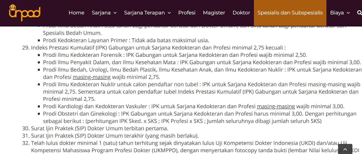 Di timur jawa dwipa aturan IPK-nya beda lagi. Batas bawah IPK dipisah antara IPK Sarjana dan IPK Profesi, jadi hati-hati ya jangan sampai kesandung gara-gara IPK Sarjana. Mostly menggunakan standar IPK Sarjana 2,75 dan IPK Profesi 3, tapi di beberapa prodi cut off ini bisa berbeda-beda, ada yang lebih rendah. Ada juga yang cut off-nya bergantung sama akreditasi FK kita. Jadi jangan lupa buat cek persyaratan khusus di tiap-tiap prodinya.